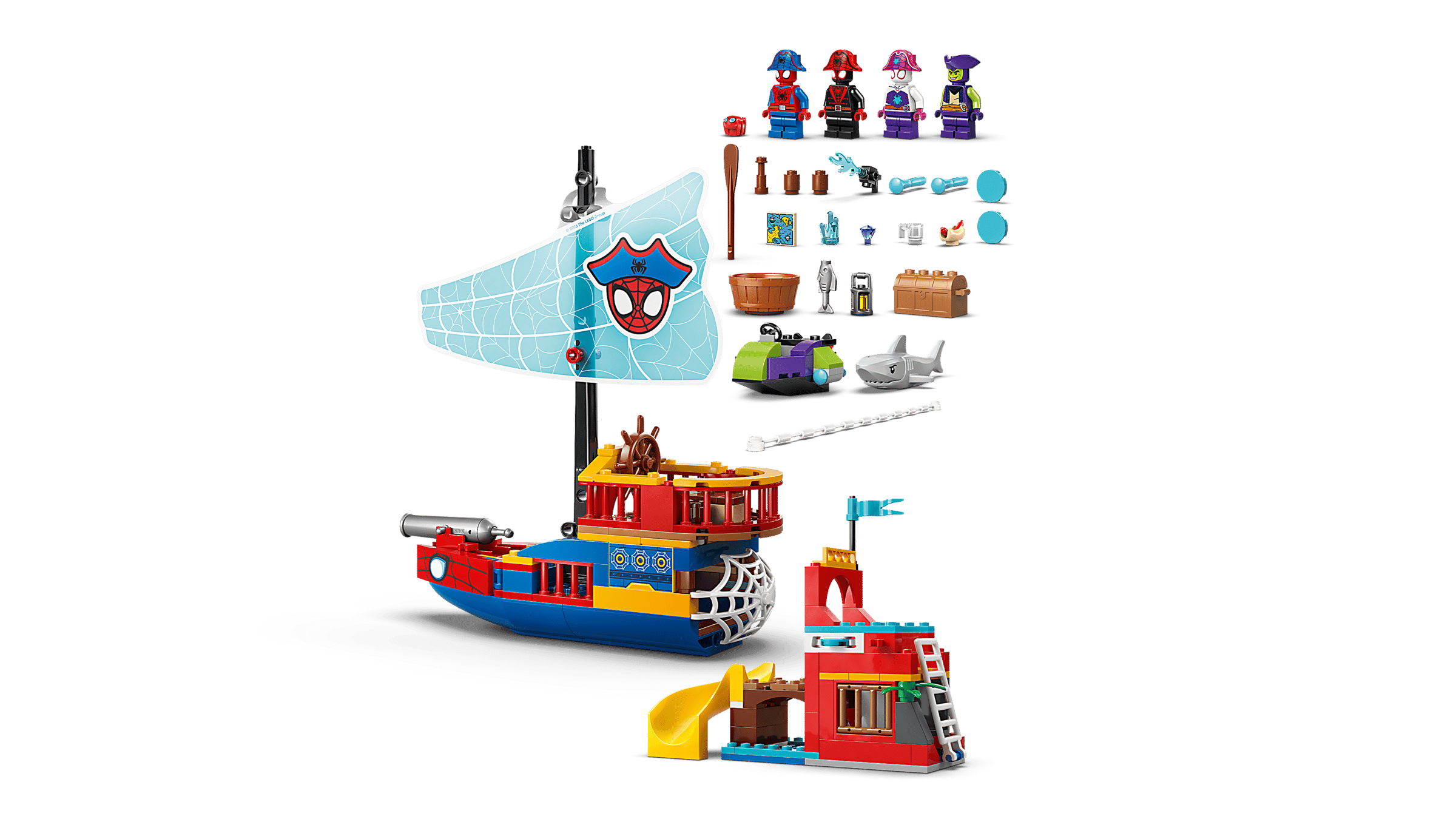 Set sail for imaginative play aboard the Team Spidey Pirate Ship (11208) creative building toy with Spidey, Green Goblin, Ghost-Spider and Miles "Spin" Morales. This building set offers a great way for boys, girls and kids ages 4 years old and up to develop skills as they explore fun at sea and on Spider Island. This feature-packed Spidey building toy includes a pirate ship, Spider Island with a slide, Green Goblin’s ship and a smaller boat. There’s a cannon on the pirate ship, a disc shooter on the island and shooters on Green Goblin’s ship. Spidey’s web rope can be used to catch a fish, a treasure chest or Goblin's ship. This Spider-Man gift for fans of Spidey And His Amazing Friends comes with colorful pictorial instructions, a Starter Brick and separate bags containing 1 buildable model per bag to make creative construction fast and fun. And, with the LEGO® Builder app, kids can zoom, rotate in 3D and track progress with simple digital instructions. Building set contains 201 pieces.